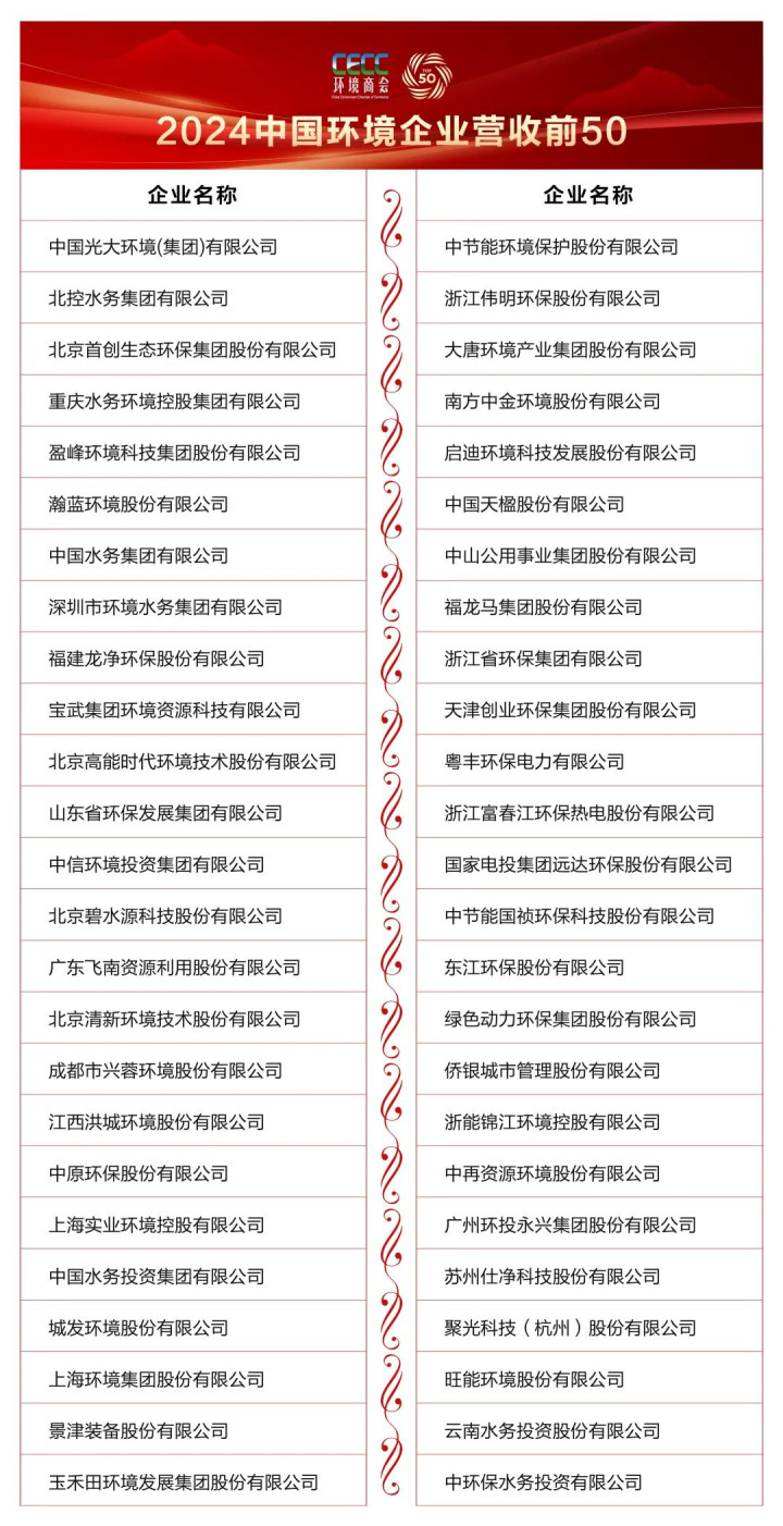 而从2024年开始,应相关部门规范化要求,“中国环境企业50强”更名为“中国环境企业营收前50”。